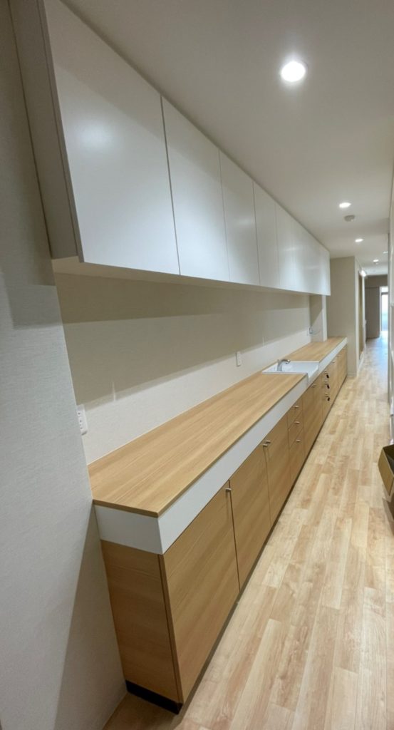 2021年8月29日 / 最終更新日時 : 2021年8月29日 soumoku 今日のお仕事 病院の家具 この秋にオープンする予定の病院の家具を製作させて頂きました。病院の家具といえば白が基調の場合が多いですが、こちらは白と木目。明るくて落ち着く印象です。 受付カウンター戸棚「製作」ページの方でもう2枚くらい写真をアップしております。