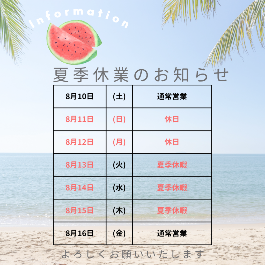 令和6年夏季休業のお知らせ